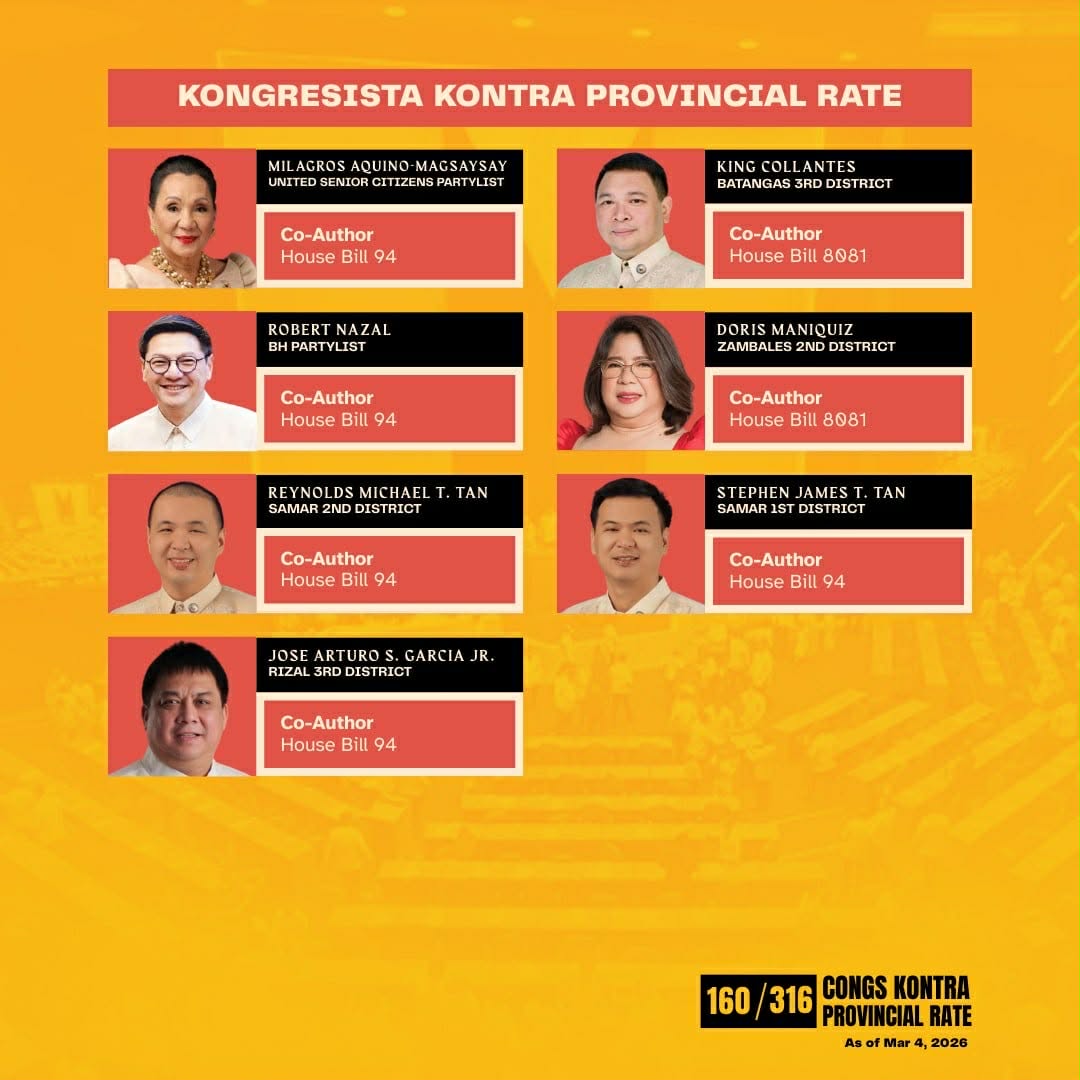 Following the most recent Kamanggagawa Partylist summary, 200 of the 316 members in the House of Representatives of the Philippines declared a clear preference for the abolition of provincial rates in response to a dire need to push through House Bill 8081, otherwise known as the National Minimum Wage Bill.