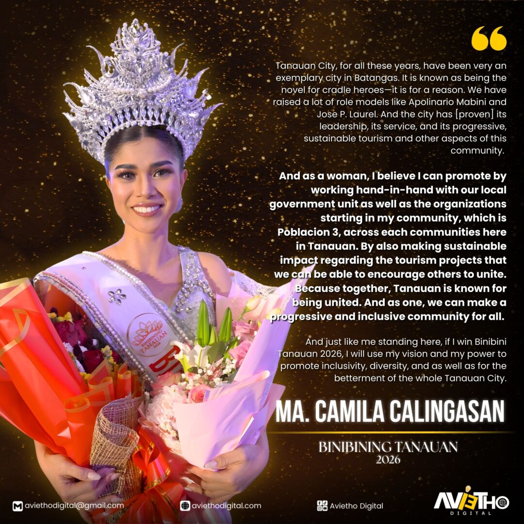 After an inspiring night filled with determination, grace, and purpose, Ma. Carmela Ann Calingasan of Barangay Poblacion 3 was crowned Binibining Tanauan 2026, carrying the honor of representing the beauty, pride, and promise of Tanauan City.