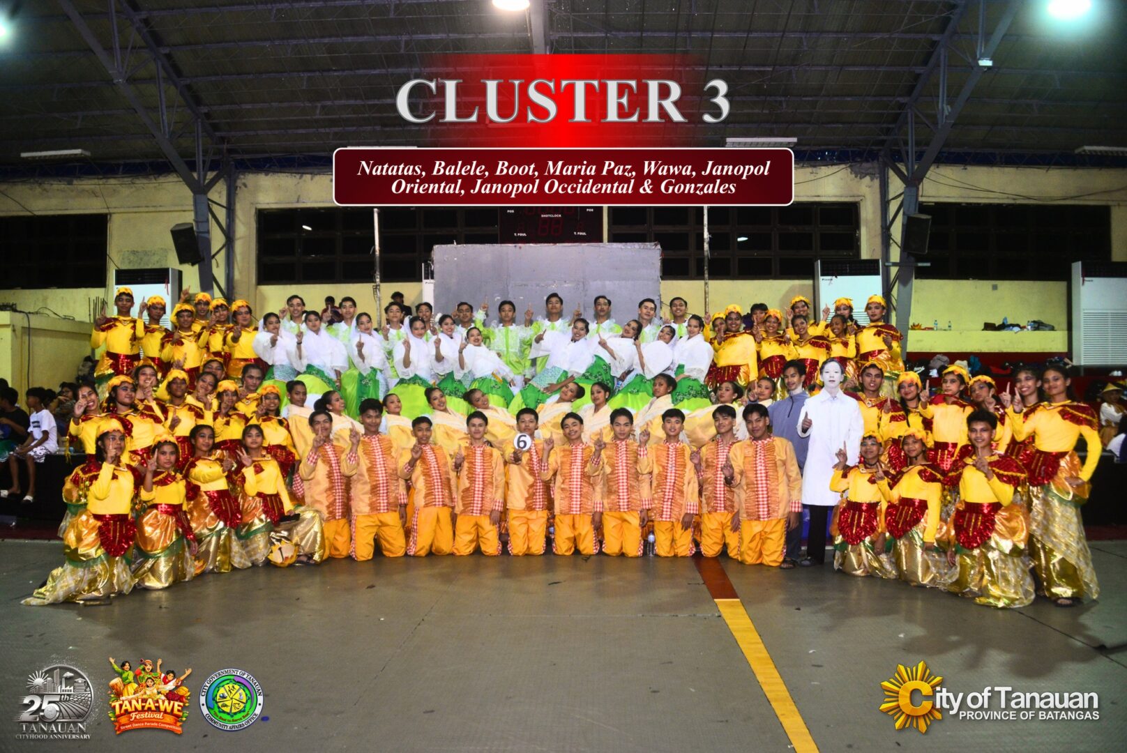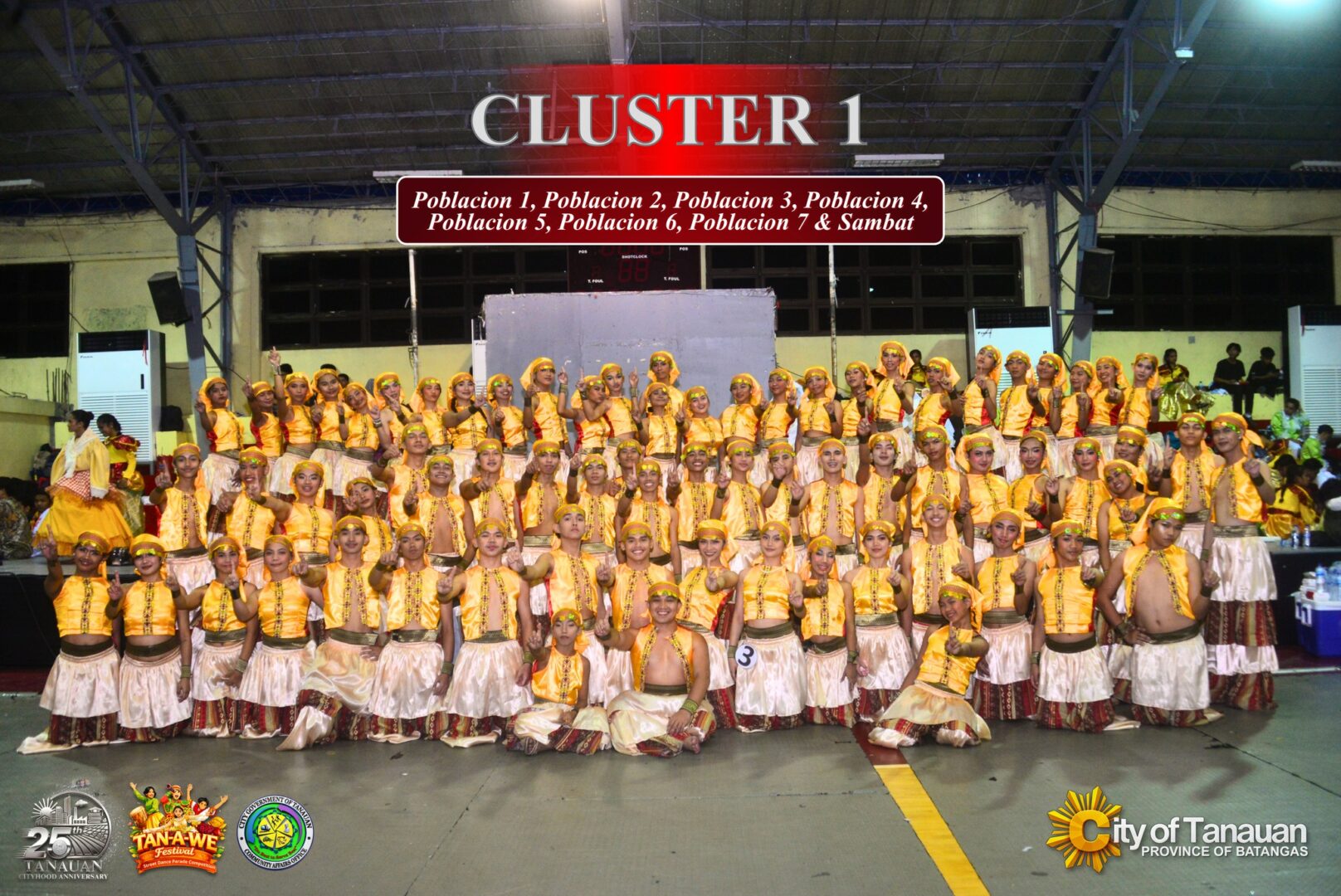 Six clusters representing various barangays participated in the competition, wherein each of them presented different kinds of performances depicting the rich heritage and symbols of Tanauan—from its agricultural roots, to putting the spotlight on tawilis, to local traditions, to important historical figures like Apolinario Mabini and Jose P. Laurel, and well-known landmarks in the city particularly the St. John the Evangelist Parish Church, Taal Volcano, and J Castles.